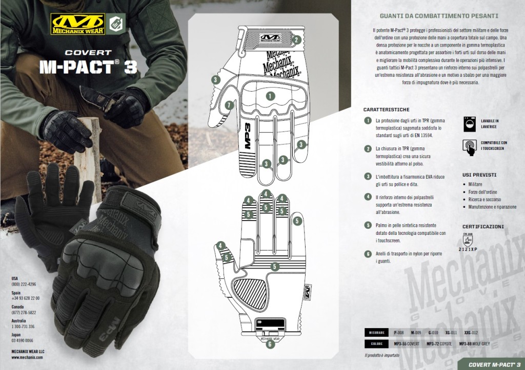 Il potente MPact 3 protegge i professionisti del settore militare e delle forze dell ordine con una protezione delle mani a copertura totale sul campo. Una densa protezione per le nocche a un componente in gomma termoplastica e anatomicamente progettata per assorbire i forti urti sul dorso delle mani e migliorare la mobilita complessiva durante le operazioni piu intensive. I guanti tattici MPact 3 presentano un rinforzo interno sui polpastrelli per un estrema resistenza all abrasione e un motivo a sbalzo per una maggiore forza di impugnatura dove e piu necessaria.